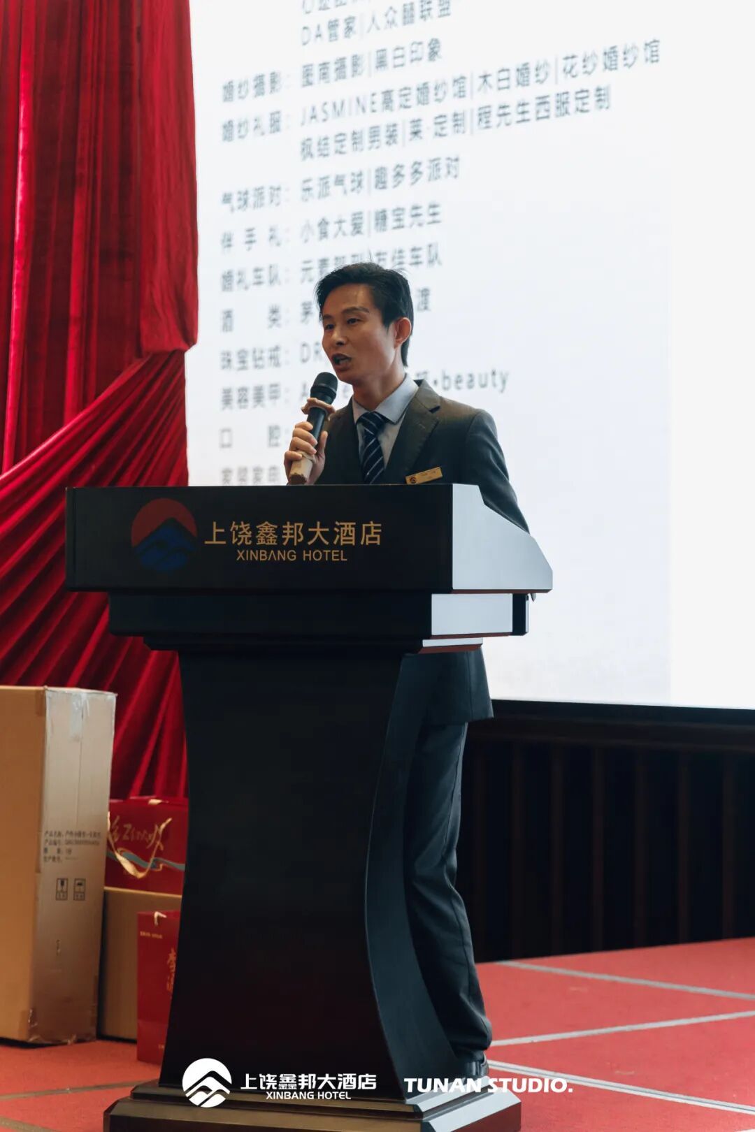 活動(dòng)伊始,上饒?chǎng)伟畲缶频甑?strong style="box-sizing: border-box;">總經(jīng)理發(fā)表了熱情洋溢的開(kāi)場(chǎng)致辭,不僅表達(dá)了對(duì)所有新人的美好祝愿,還親自抽取了首個(gè)大獎(jiǎng)——總統(tǒng)套房體驗(yàn)券,瞬間點(diǎn)燃了現(xiàn)場(chǎng)的熱情與期待。
