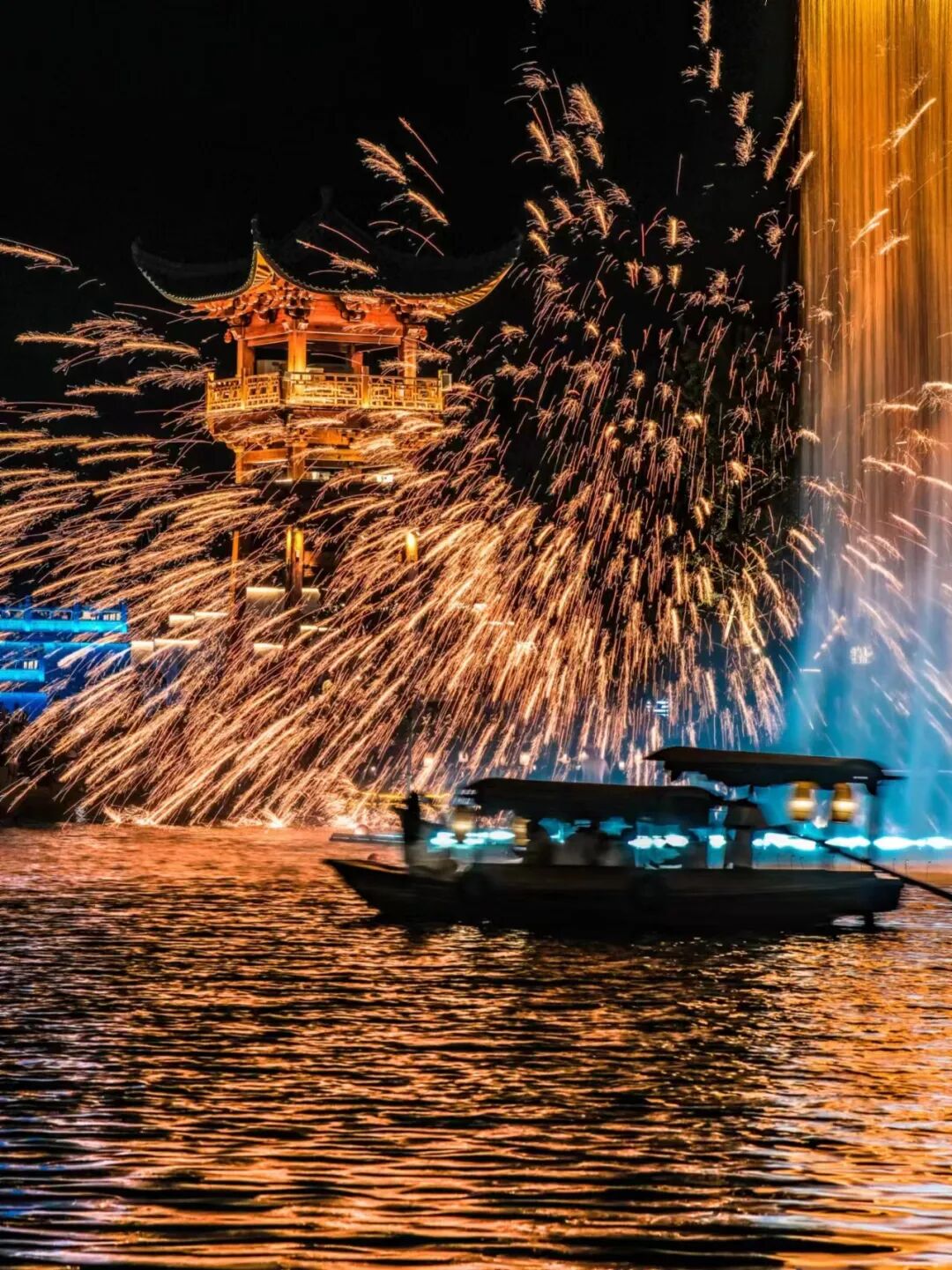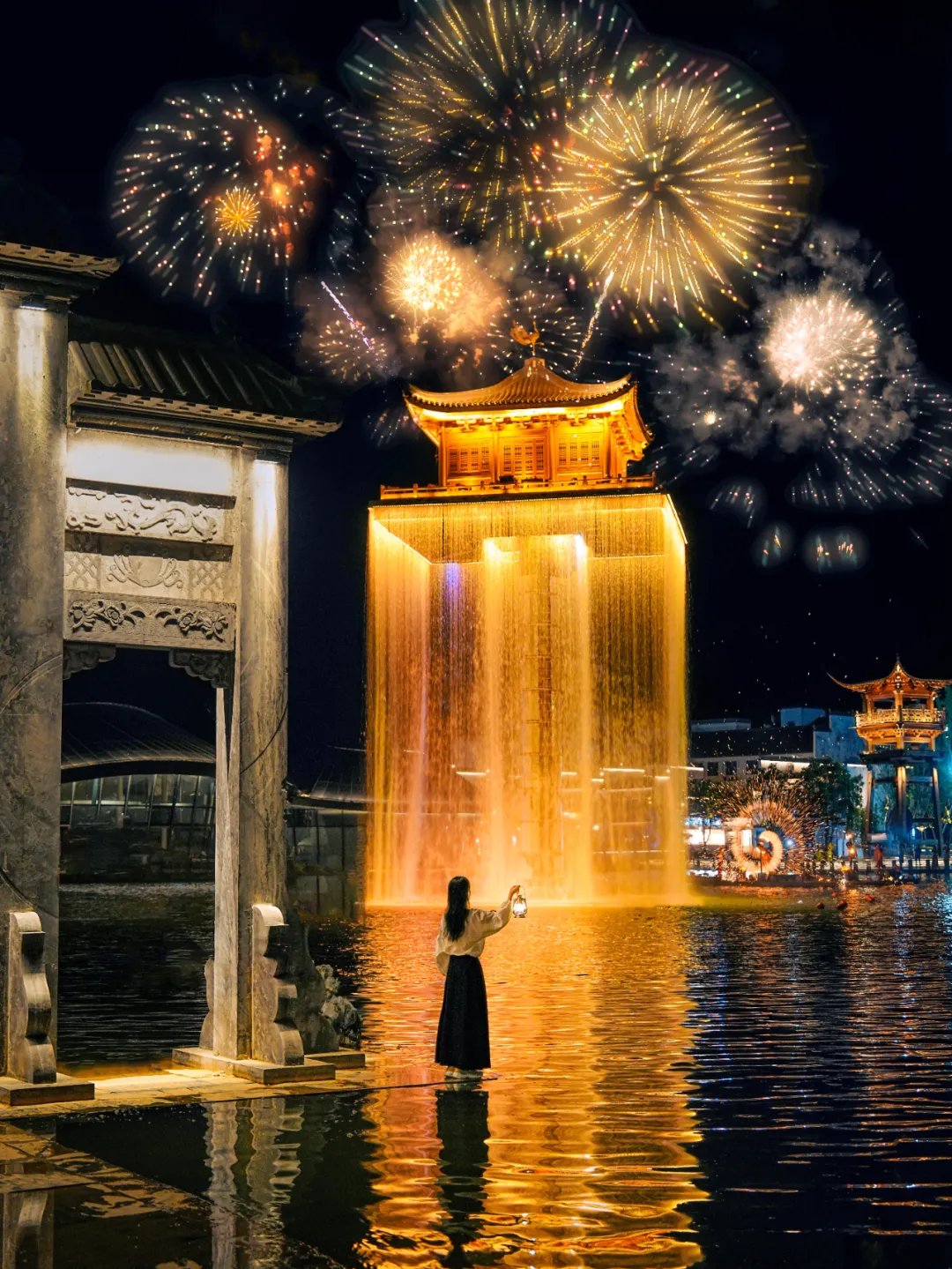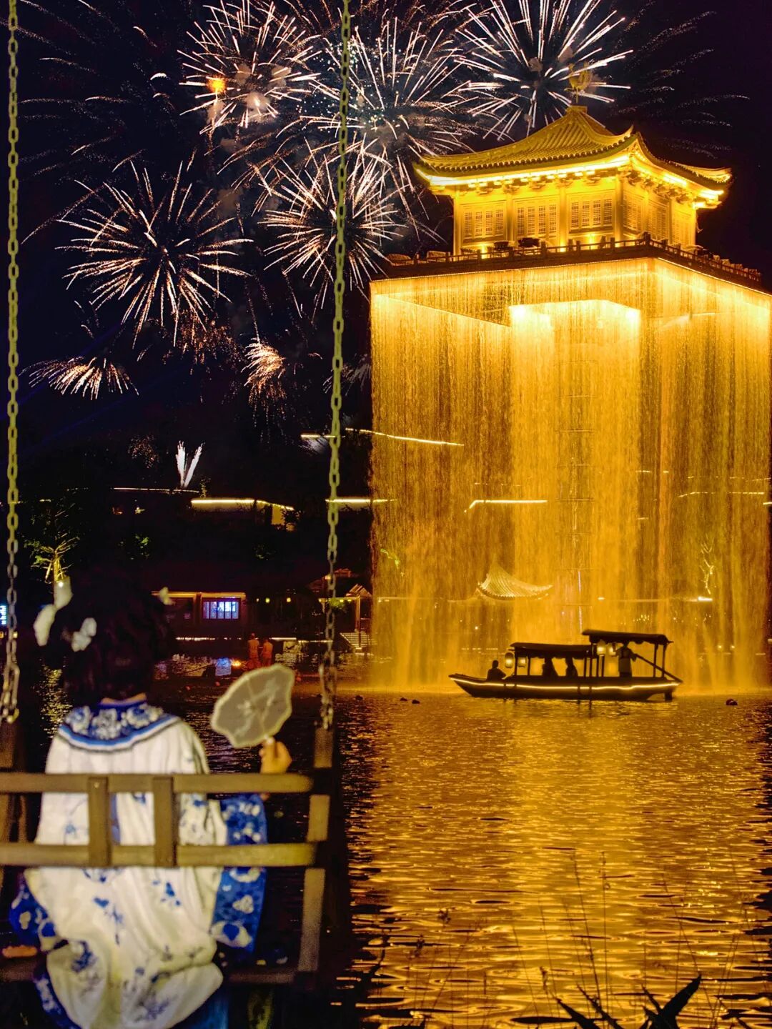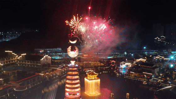 星如雨,燈如晝,百萬(wàn)級(jí)煙花盛宴在小鎮(zhèn)夜空中綻放,璀璨浪漫,漫天繁花與絕美金閣瀑布相互映襯,美得如同一場(chǎng)春夜幻夢(mèng)。