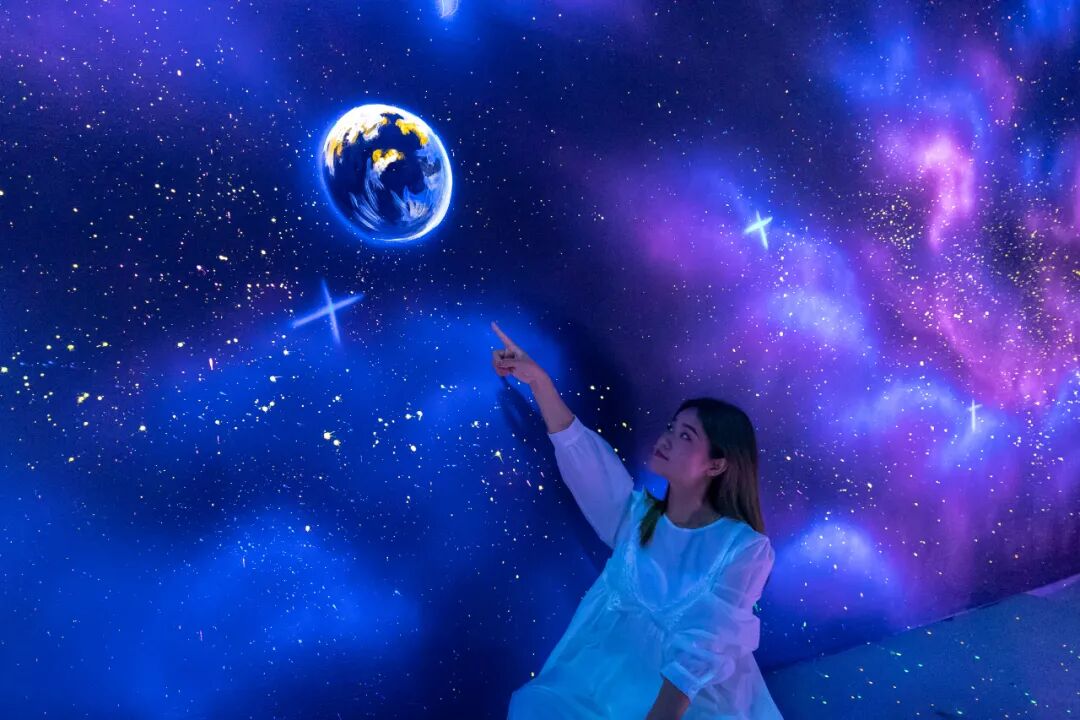 全息投影打造裸眼3D體驗(yàn)館,利用人兩眼具有視差的特性,在不需要任何輔助設(shè)備(如3D眼鏡、頭盔等)的情況下,沉浸式體驗(yàn)?zāi)Щ脮r(shí)空穿越,在“平行世界”里盡情穿梭。