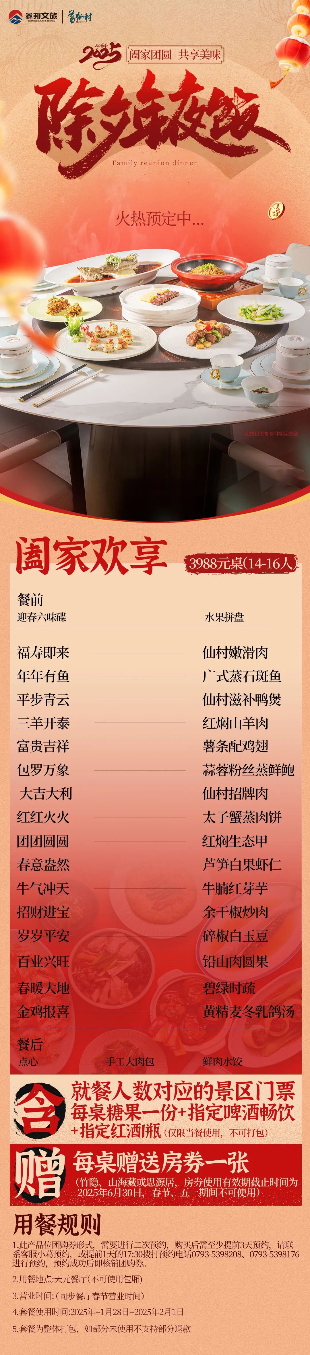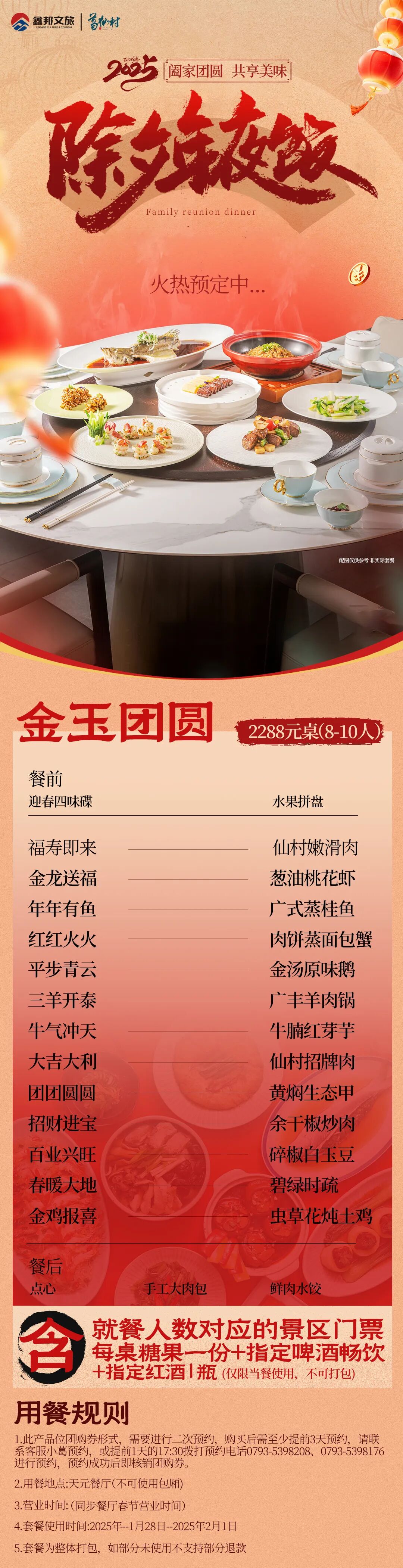年夜飯,是中國人一年一度的親情盛宴,在這個團圓的時刻,我們一同相聚在葛仙村,用美食傳遞愛和祝福,共度美好時刻。