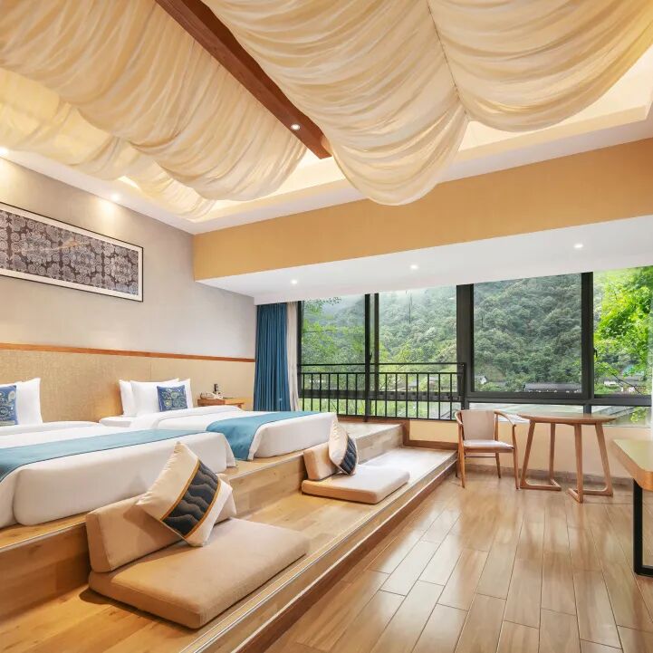 景區(qū)內(nèi)有洗心院酒店、枕山宿酒店、月染仙居酒店、天鏡臺云端酒店等八大酒店民宿可供選擇,山下住宿吃喝玩樂一應(yīng)俱全,山上如同住在千里江山的畫中,別有一番趣味。