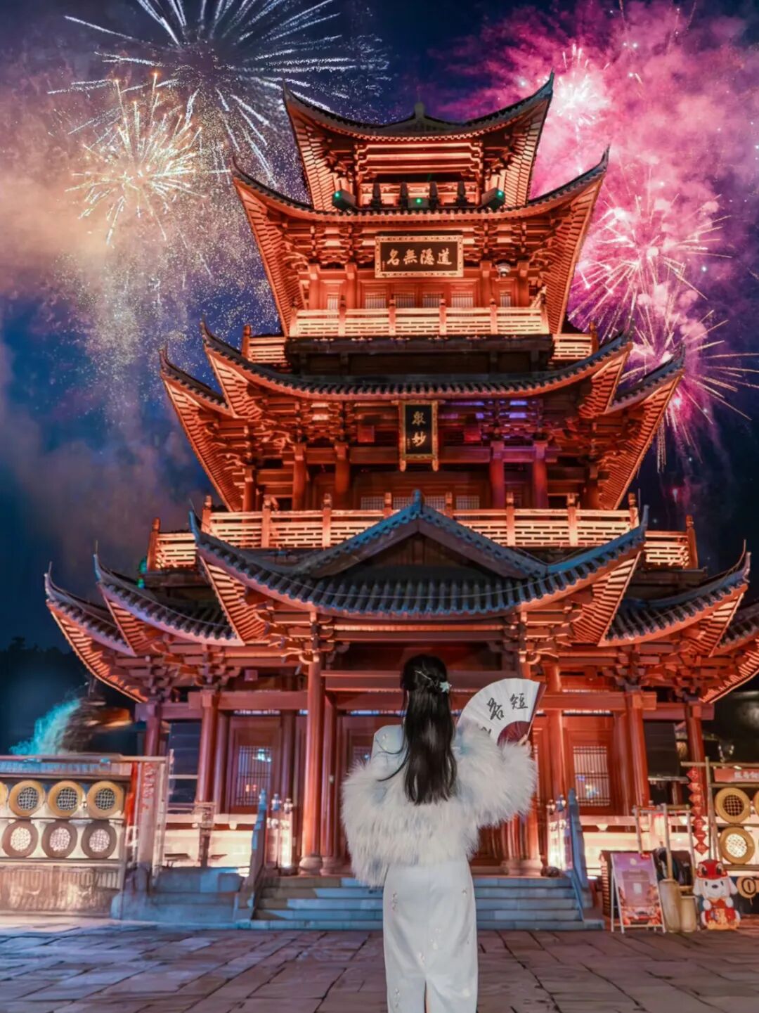 白天,葛仙村是仙霧縹緲的古村落,當(dāng)夜幕降臨,整個村落被璀璨的燈光點亮,如夢似幻,光影交織,仿佛在為四海八方的來客送上滿滿的祝福。