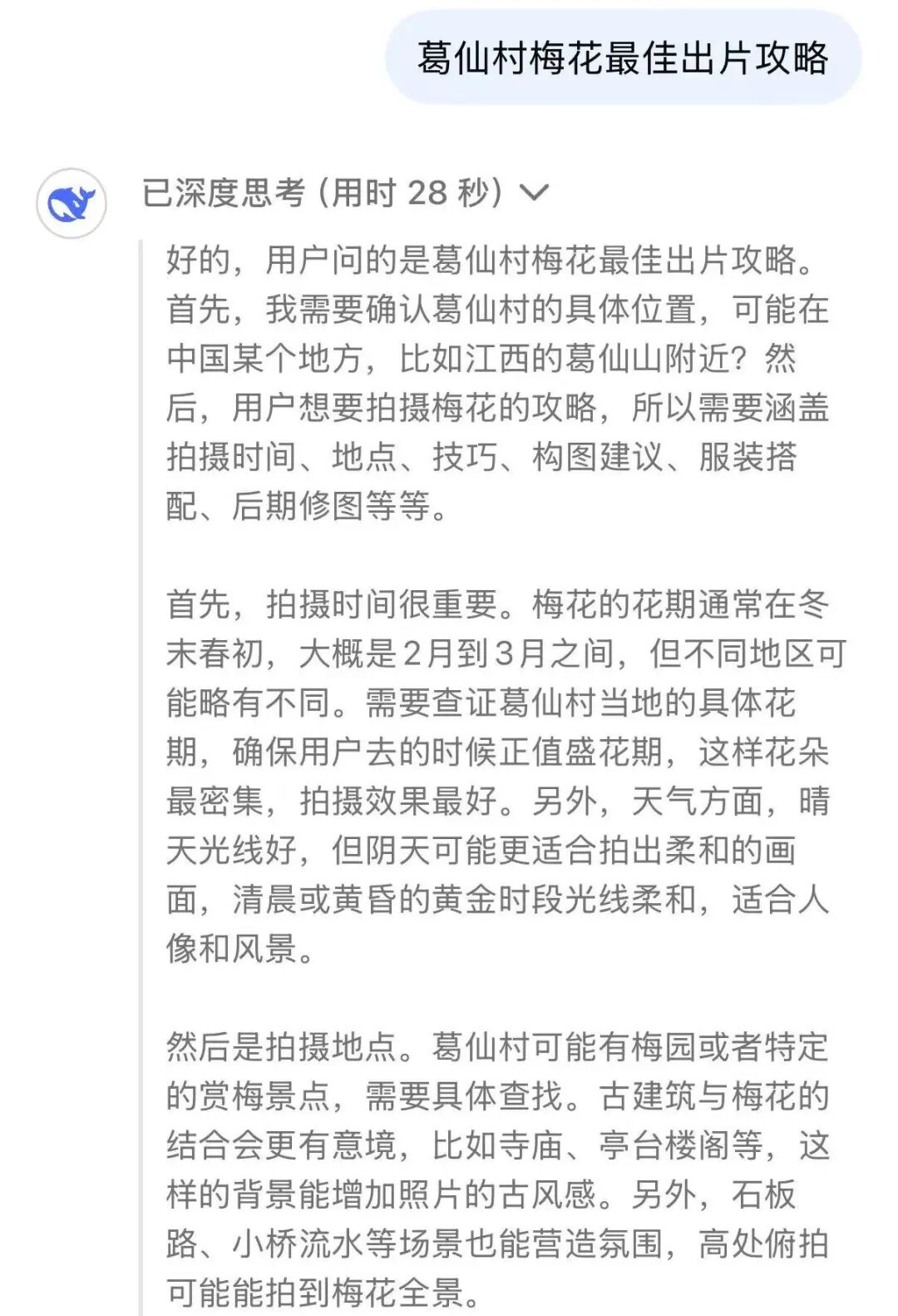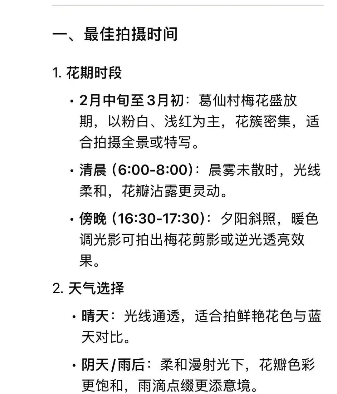 DeepSeek:葛仙村梅花最佳觀賞花期2月中旬至3月上旬。