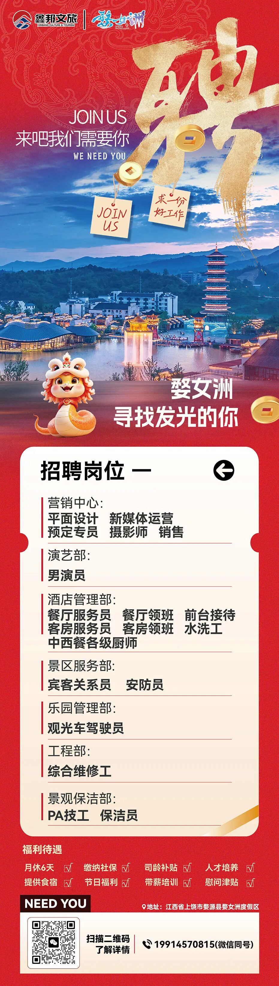 ?應(yīng)聘地址:江西省上饒市婺源縣婺女洲度假區(qū)游客中心負(fù)一樓招聘處