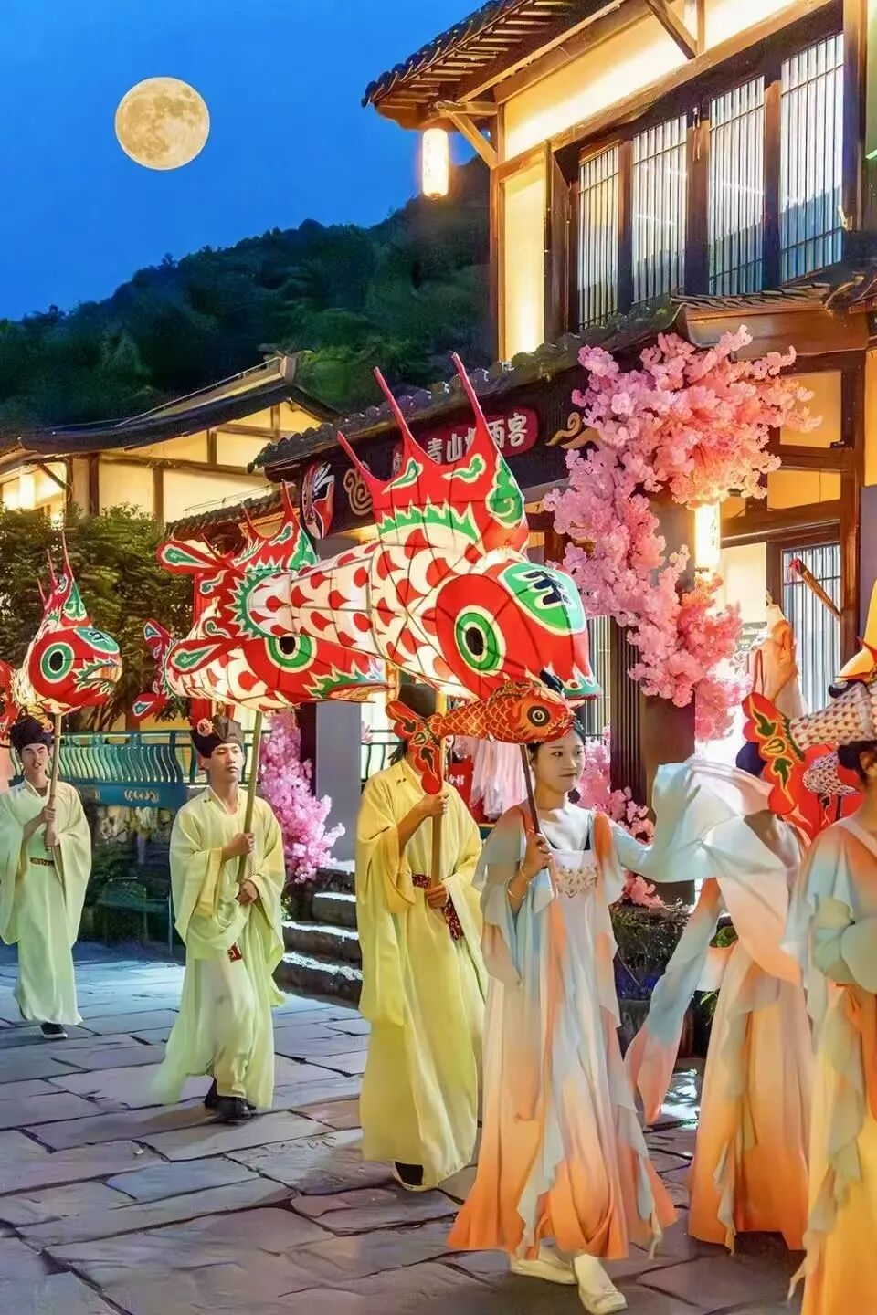 跟隨魚燈隊(duì)伍從鎮(zhèn)物文化館到眾妙閣感受夜游的浪漫吧!