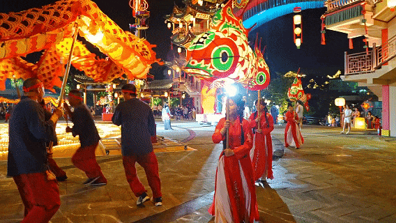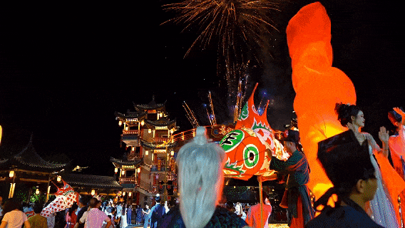 明燈構筑璀璨銀河,百米燈龍、魚燈、蝦燈、滾燈奔騰游弋!仿若穿越進《上元燈彩圖》的實景中,在繁華熱鬧的街巷市井,感受辛棄疾筆下上元夜的極致繁華!隨手一拍都是國家級審美大片!
